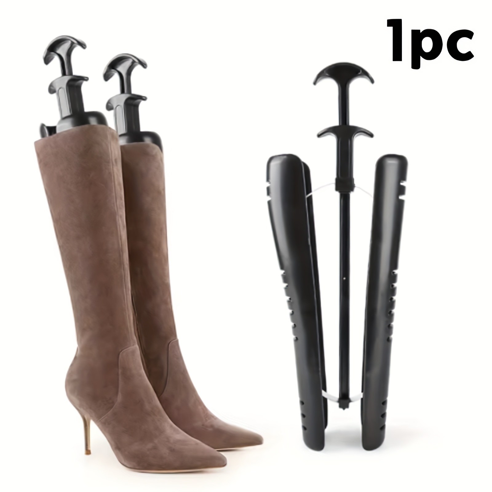 TEMU 1개입 높은 부츠용 부츠 쉐이퍼 | 손잡이 달린 부츠 가락지 스트레처, 여성용 부츠 신발 트리 스트레처, 여성용 높은 부츠를 위한 긴 부츠 지지 신발 홀더, 재질: 플라스틱, 색상: 블랙