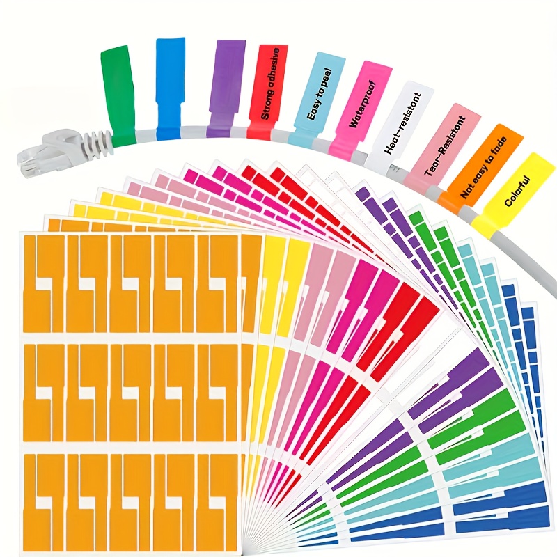 TEMU 300개 멀티컬러 케이블 라벨, 찢어짐 방지 PVC 소재, 필기기 및 레이저 프린터 호환, 스크래치 방지 쉬운 케이블 관리, 와이어 식별, 홈 오피스 설정, 내구성 태그, 컬러코드 시스템, 고품질 접착제, 찢어짐 방지 태그, 프린터 호환 태그, 오피스 정리, 테크 애호가 전용