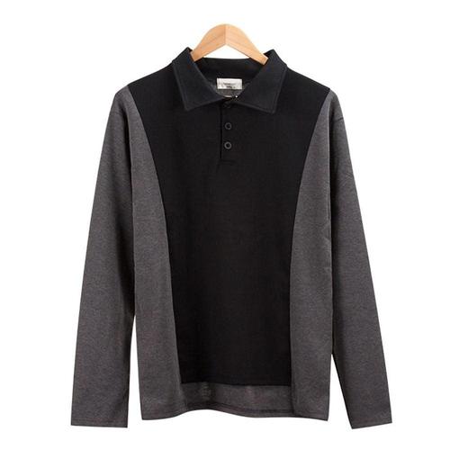 배색 블록 심플 카라 차콜 티셔츠_MOD027 W21E81E