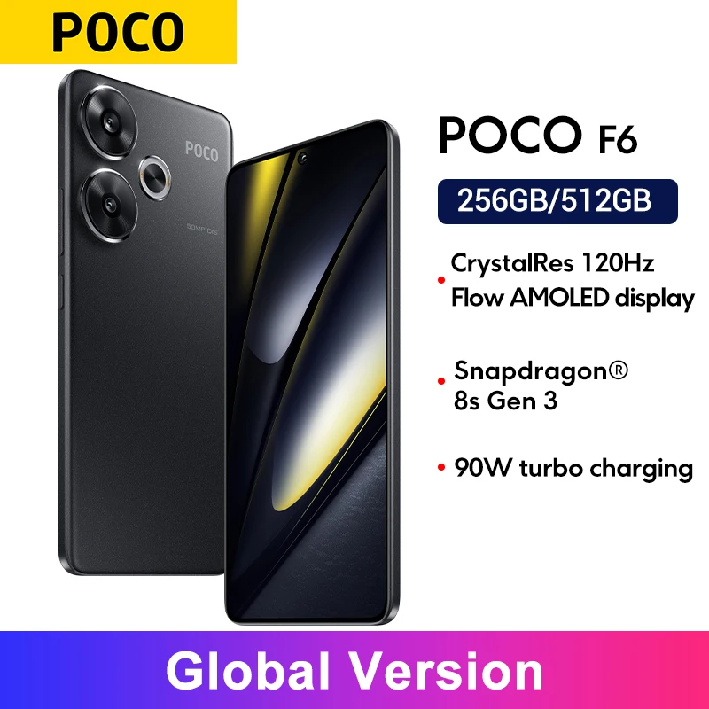 POCO F6 5G 글로벌 버전 스냅드래곤 8s Gen 3 휴대폰 120Hz 플로우 AMOLED 디스플레이 90W 터보 충전 50MP 카메라 시스템 (OIS 탑재)