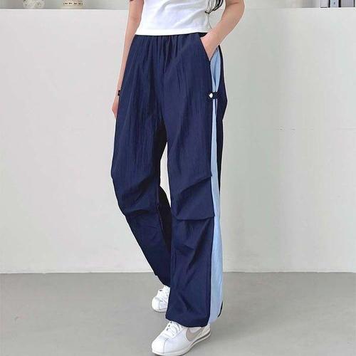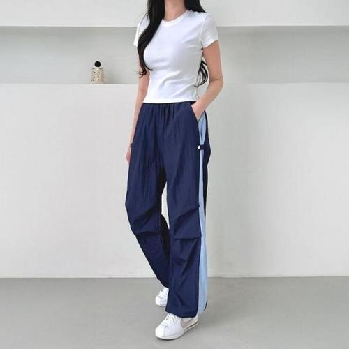 [에이치플러스몰]여성 패션 베이직 디자인 사이드 스냅 투톤 와이드 스트링 팬츠