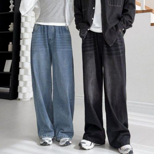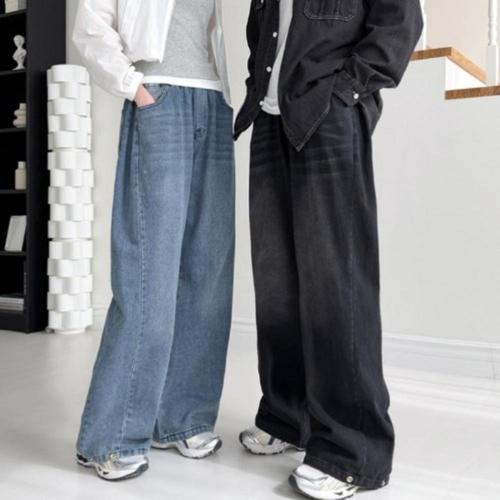 [굿쇼핑몰_의류]남녀공용 핀턱 스냅 버튼 와이드 밴딩 청바지