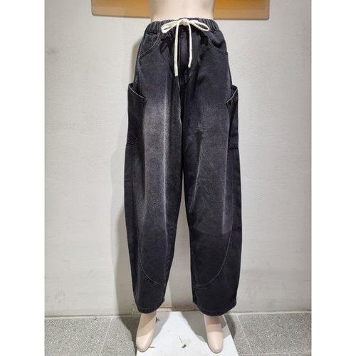 [다잇템]여성 진팬츠 핀턱 캐쥬얼 넓은 밴드스냅버튼