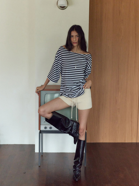 [스너기스트] 솔렌 보트넥 스트라이프 티 [네이비]