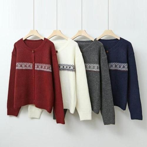 [다잇템]여성 스웨터 스노우 U넥 여유핏 가디건