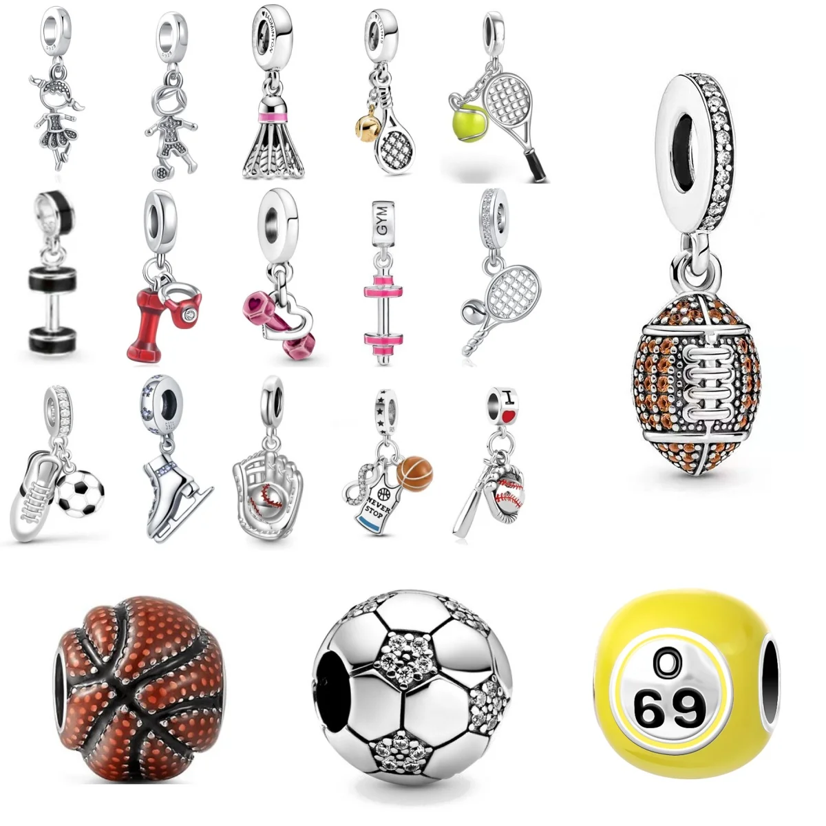 새로운 925 스털링 실버 참 축구, 야구, 테니스 덤벨 펜던트, 유럽 팔찌 및 여성용 주얼리에 적합