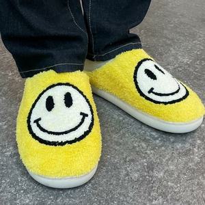 편안한 스마일 디자인 남성용 뽀글이 슬리퍼 스마일슬리퍼 거실실내화 털슬리퍼 겨울슬리퍼