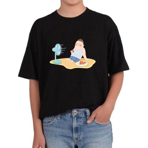 [에이치플러스몰]길단 반팔 USA핏 여름 더위 선풍기 수박 여름휴가는 선풍기그림 다양한색상 전사이즈