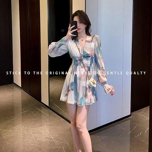 파스텔 쉬폰 여리여리핏 스모크 미니 원피스 러블리룩 WAE0E1C