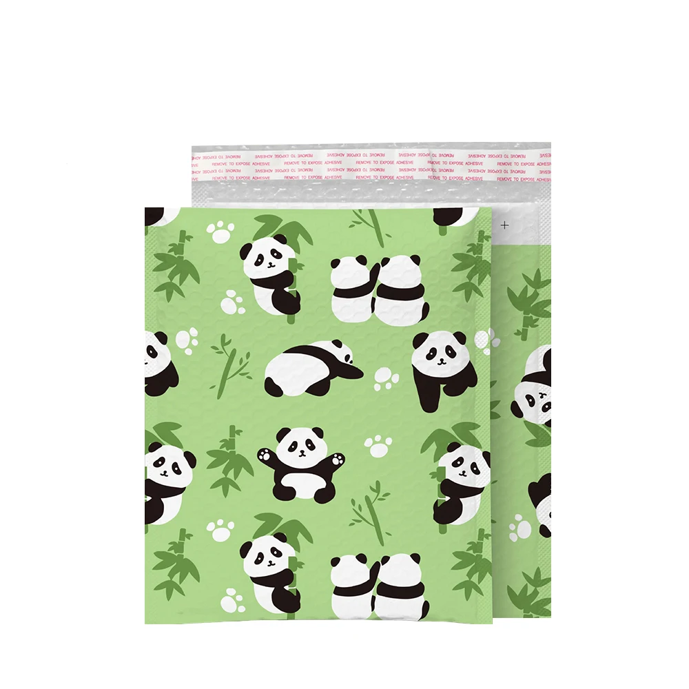 50Pcs 10x13inch 버블 봉투 귀여운 팬더 인쇄 버블 가방 녹색 플라스틱 패딩 배송 봉투 선물 패키지 용품