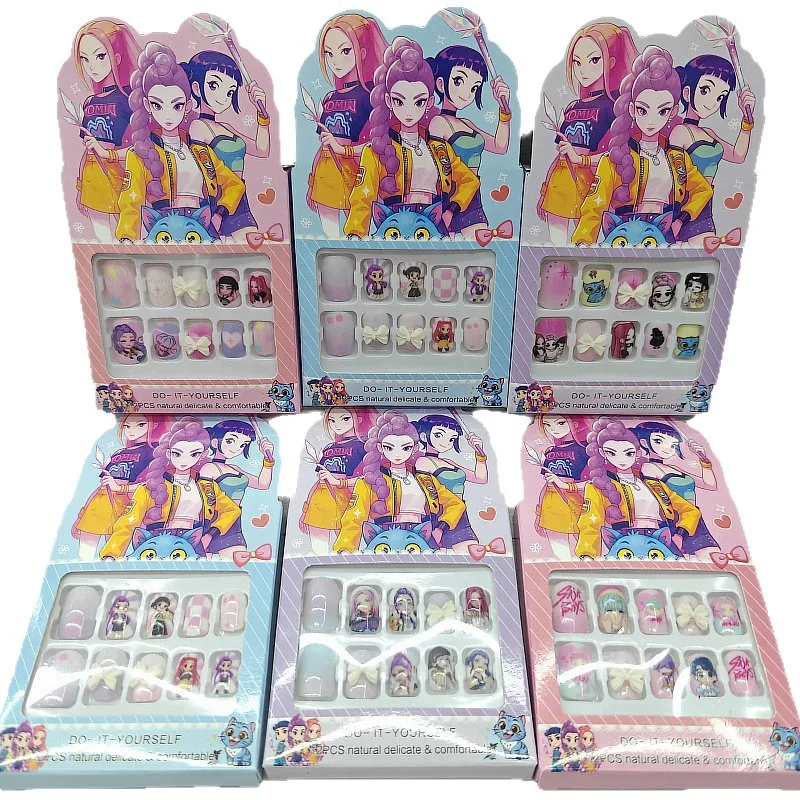 Kpop 키즈 네일 스티커 장난감 걸그룹 부티크 만화 DIY 풀 커버 웨어러블 네일 아트 패치 어린이 생일 선물 장난감