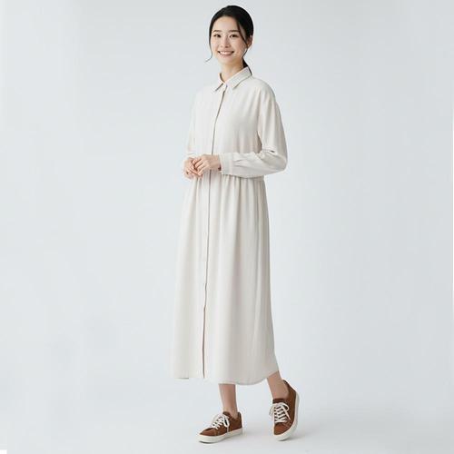 샵앤) 여성 카라넥 데일리 롱셔츠 무릎기장 원피스 21DS-WDR-4890-아이보리