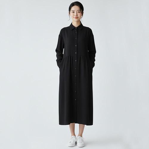 [더마레] 여성용 클래식 카라 데일리 셔츠 가을 롱원피스 2colors