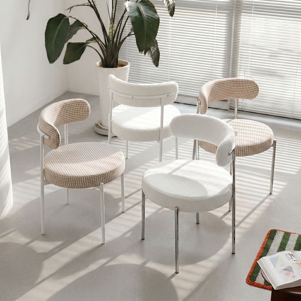 스위트 디자인 체어 부클 의자 체크 패브릭 식탁의자 생활발수 인테리어 디자인 카페 의자