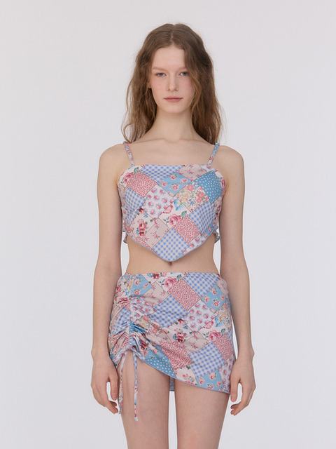 [루프루프 ] 셔링 커버 업 스커트 [보헤미안 패치워크_스카이 블루]
