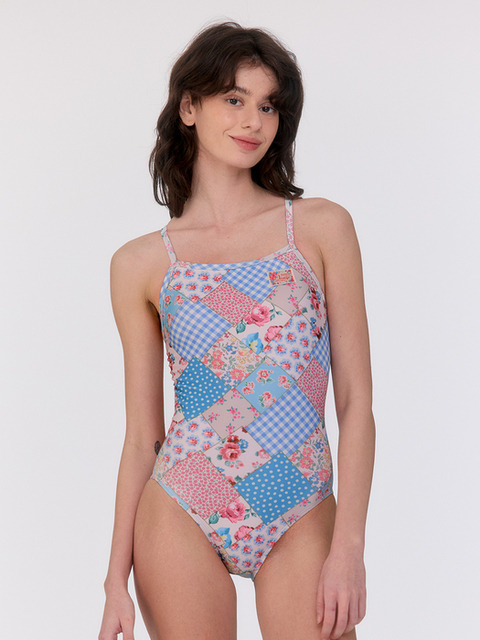 [루프루프 ] [보헤미안 패치워크_스카이 블루] 브이백 원피스 수영복