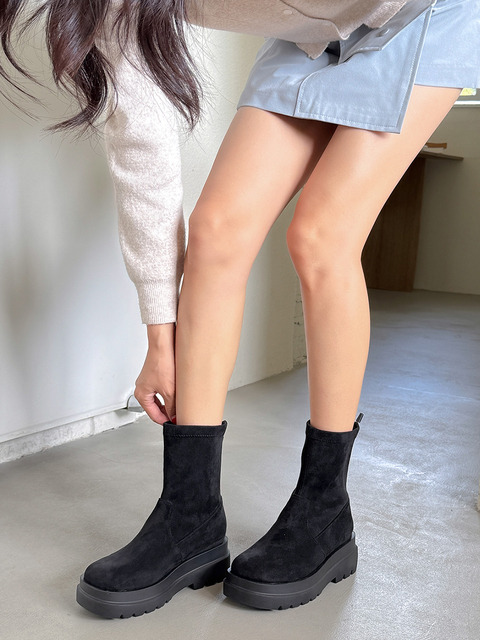 [비아소뇨] 쎄무스판 청키앵클부츠