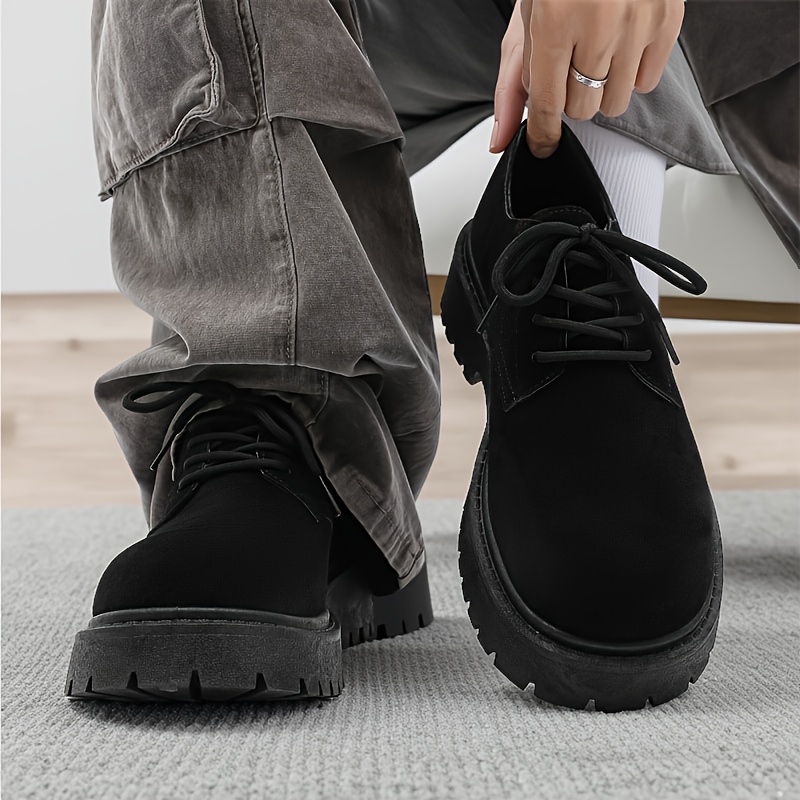 TEMU 남성용 신발 신발, 패션 솔리드 컬러 레이스업 부츠, 편안하고 미끄럼 방지, 내구성 강한 남성용 아웃도어 활동용 부츠