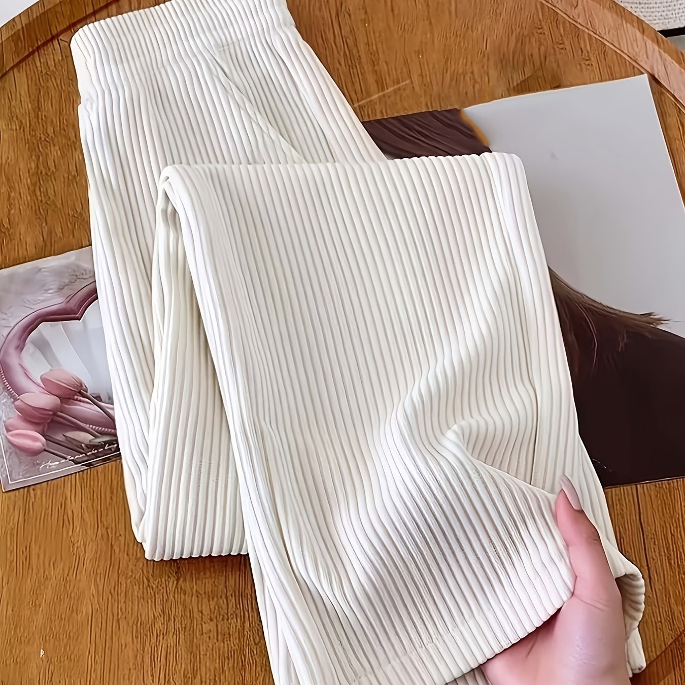 TEMU 여성용 우아한 단색 레그 팬츠 - 기울어진 포켓 디자인 - 통기성 좋고 편안함, 성인용으로 적합, 모든 계절에 착용 가능