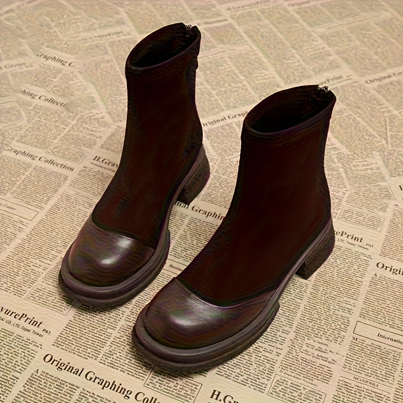 TEMU 봄/가을용 슬림 부츠, 단층 청키 힐 높이 증가 탄성 부츠, 딥 마우스 레트로 숏 부츠, 다용도 및 패셔너블한 여성용 스몰 앵클 부츠, 여성 신발