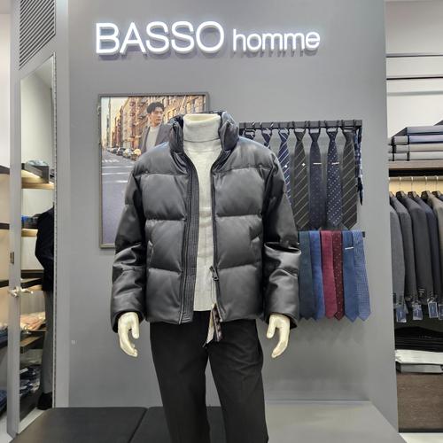 [바쏘옴므]심플ㆍ블랙덕다운비건레더점퍼WSY4UA43