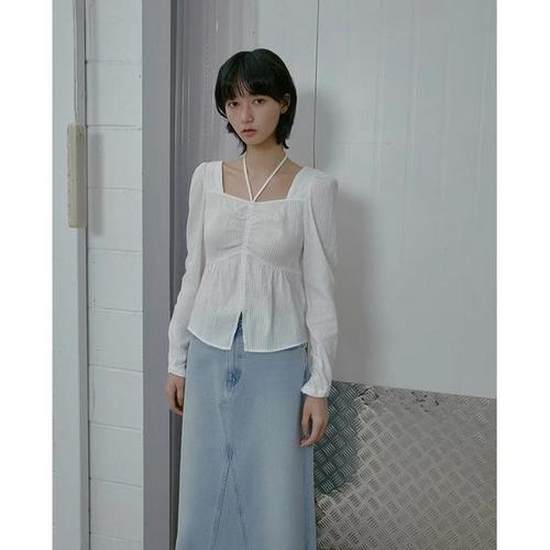 스퀘어넥 가을 긴팔 DHH-D99 블라우스 셔링 WFJHNVF