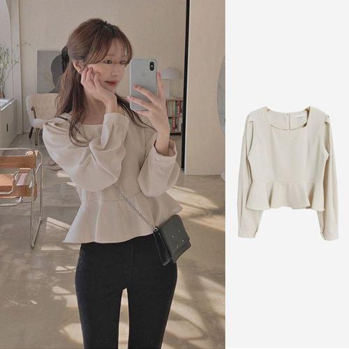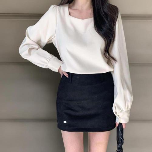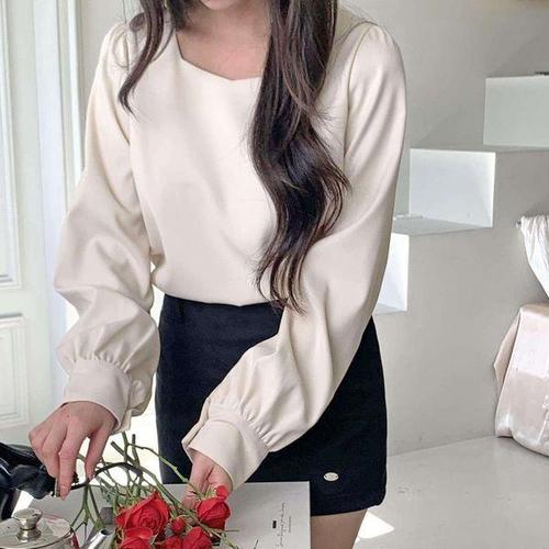 [신상오픈런]여성 볼륨 소매 긴팔 블라우스 스퀘어넥 디자인