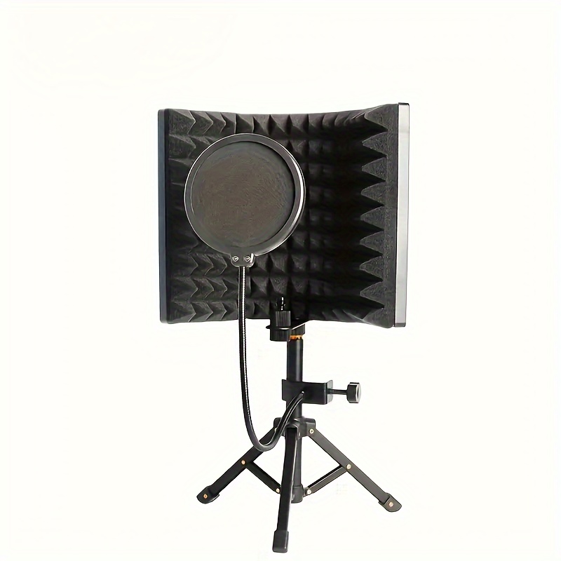 TEMU 휴대용 녹음 실드 키트 삼각대 스탠드 포함 - ABS 마이크 격리 실드, 3도어 접이식 소리 흡수 폼, 방지 스프레이 메쉬, 스튜디오 및 현장 소음 감소를 위한 무충전 스탠드 장착 설치
