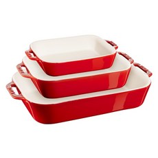 스타우브 에나멜 세라믹 스퀘어 오븐 팬 3개입, 체리 레드, 1개