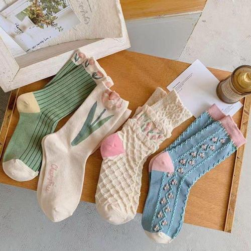 TEMU 여성용 미드 튜브 양말 4켤레, 타이트한 상어 바지, 여성용 미드 튜브 양말, 봄/여름 트렌디 양말, 데일리룩에 적합한 고급스러운 레터 긴 양말