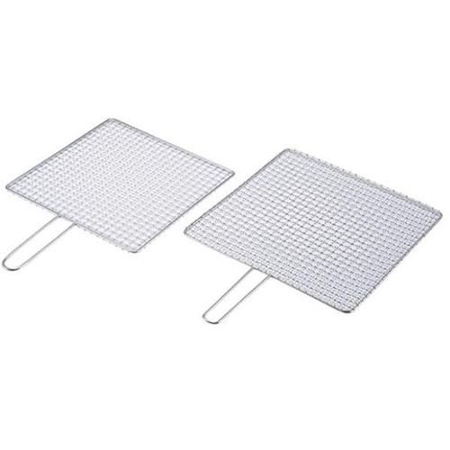 손잡이 석쇠 중 (26x26cm) 1개 스텐 그릴 사각 캠핑 불판 양면 손잡이석쇠 고기 접이식 생선