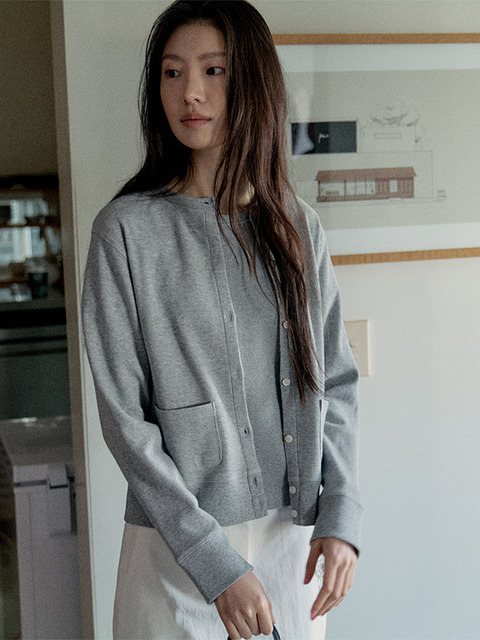[스텝어라운드] 소프트 코튼 베이직 라운드 가디건_웜 챠콜