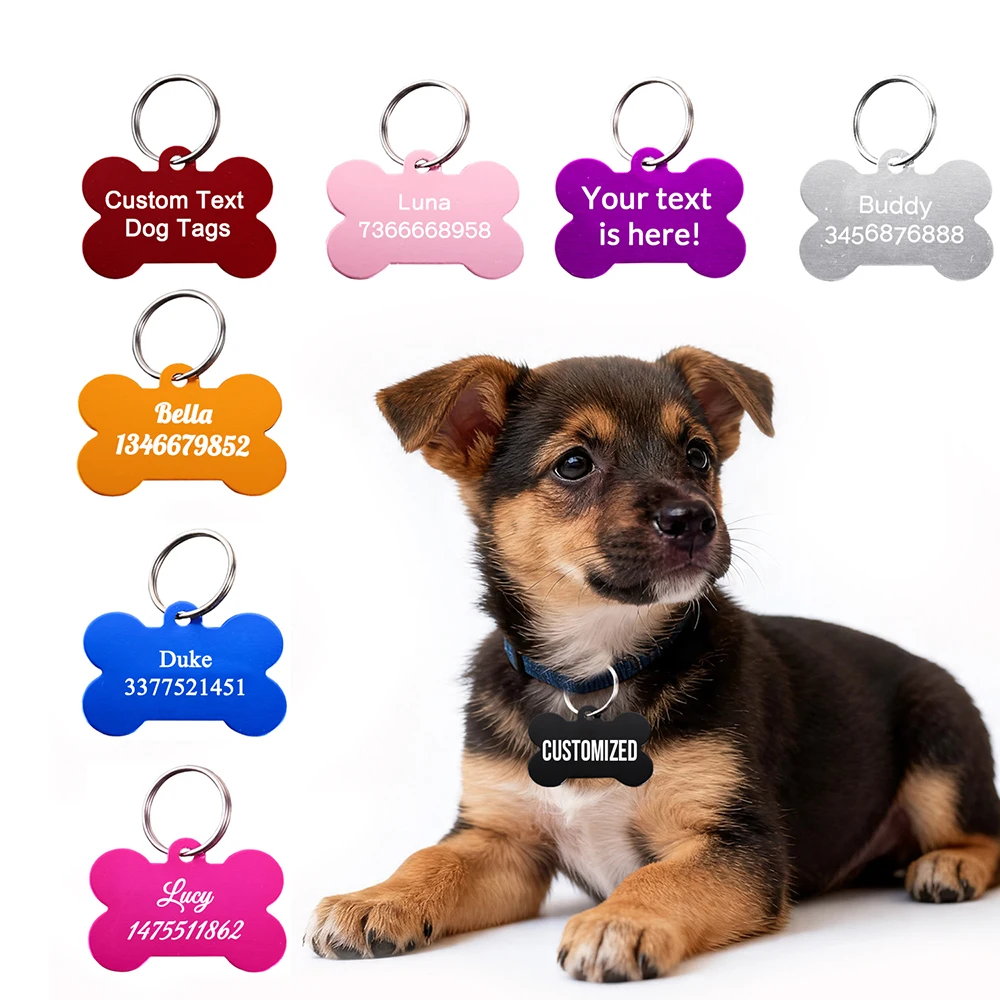 맞춤 이름 강아지 인식표 뼈 모양 개인 이름 반려동물 ID 태그 레이저 각인 번호 분실 방지 펜던트 맞춤 텍스트 강아지 인식표
