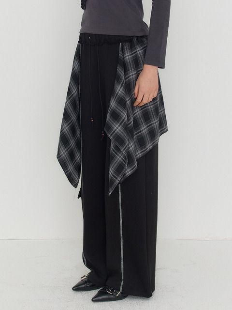 [디어스토커] 루덴 체크 셔츠 레이어드 팬츠 - 블랙
