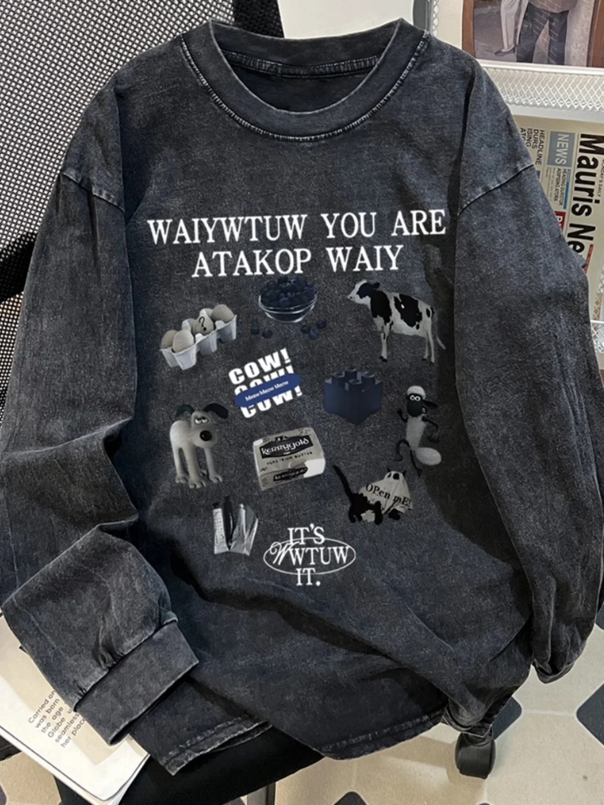워싱된 긴팔 티셔츠 남녀 공용 캐주얼 탑 빈티지 스타일 해외 주문 상품 태그 제거 커플룩
