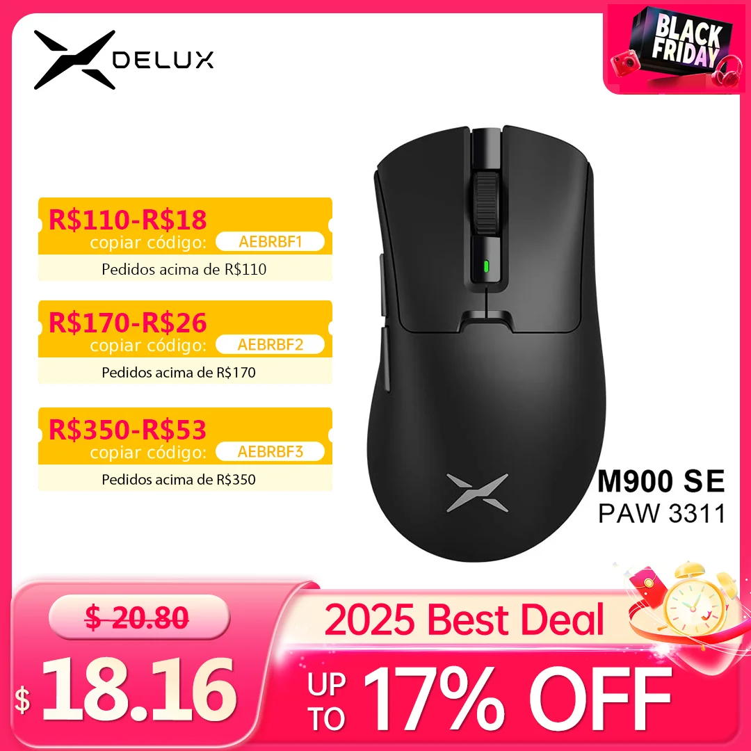 Delux M900 SE 무선 게이밍 마우스 인체공학 디자인 PAW3311 12000DPI 초경량 63g 오른손 대형 손 전용 PC 노트북용