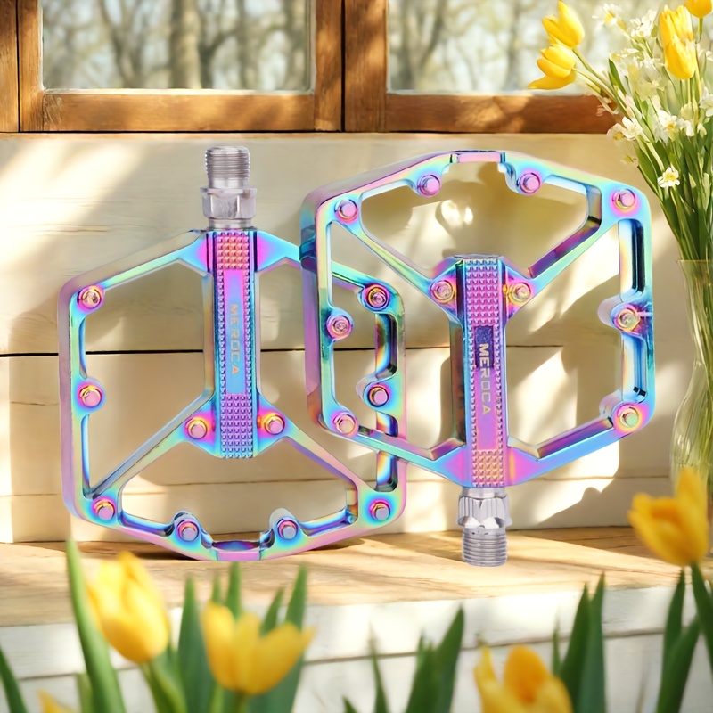 TEMU 반사판이 있는 와이드 플랫폼 자전거 페달 - 산악, BMX, 로드 바이크용 컬러풀 무지개 MTB 페달 - 내구성 강한 금속 구조, 안전 나사 부착, 다중 자전거 사용 가능, 일상적인 편안함을 위한 사이클링 액세서리