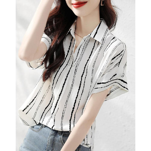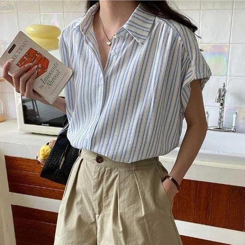 [셀러허브_여성트랜드패션]Rly 스트라이프 여름 반팔 셔츠 남방 여성 용 블라우