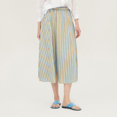 [KENZO] 라프리마 여성 니 Length 미디 스트라이프 롱 코튼 스커트 FD52JU3563CG77 Blue /8
