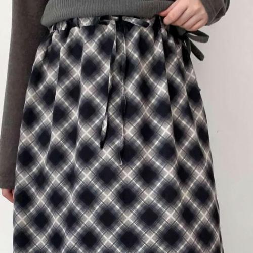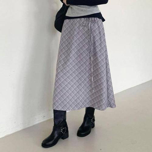 [다잇템][다잇템] 여자 격자체크 롱 에이라인 리본 캐쥬얼 고무줄 스커트_23328704_588872