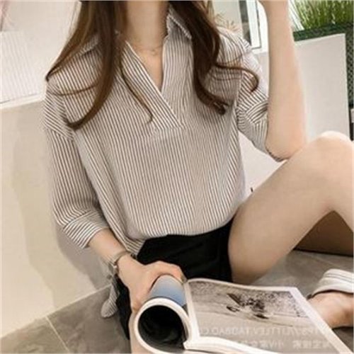 [엄지척]쉬폰 LF26300 얇은 소매 블라우스 줄무늬 셔츠 카라_19651256_667501