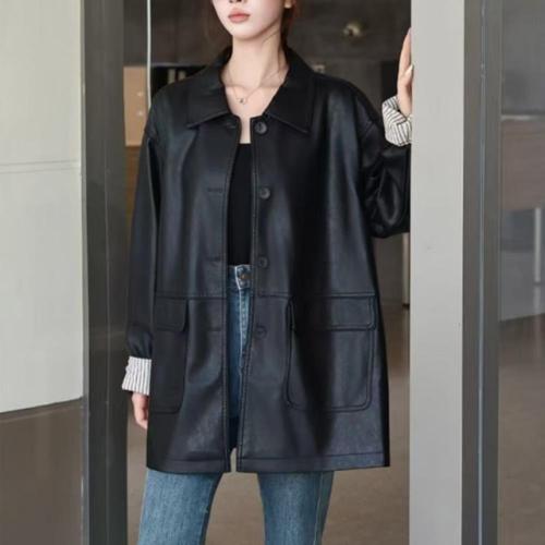 [옷자락]여자 힙무드 단가라안감 루즈핏 가죽 하프 자켓