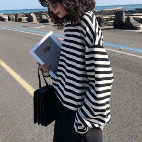 [셀러허브_여성트랜드패션]여성 데일리 오버핏 맨투맨 캐주얼티 스트라이프