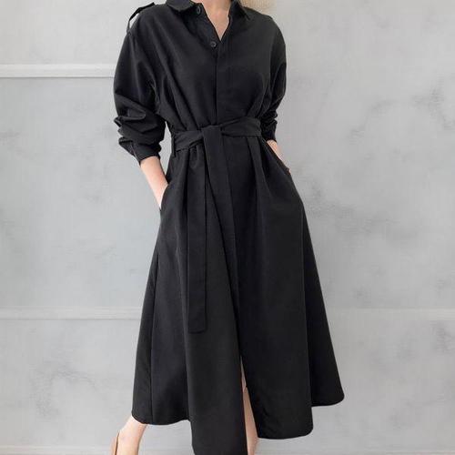 [옷자락]여성 트렌치 롱셔츠 어깨끈 스트랩 투웨이 가을 롱드레스