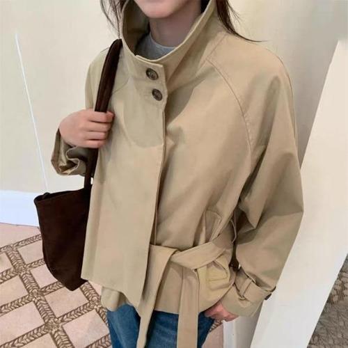 여성 스트리트 패션 하이넥 스트랩 짧은 트렌치 코트