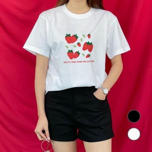 [오노마] ONM 여자 짧은 크롭 스타일 스트로베리 귀여운 반팔티