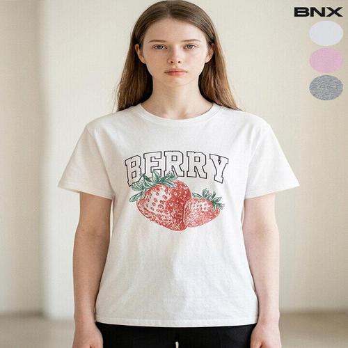 [비엔엑스]여성 스트로베리 라운드 반팔 티셔츠