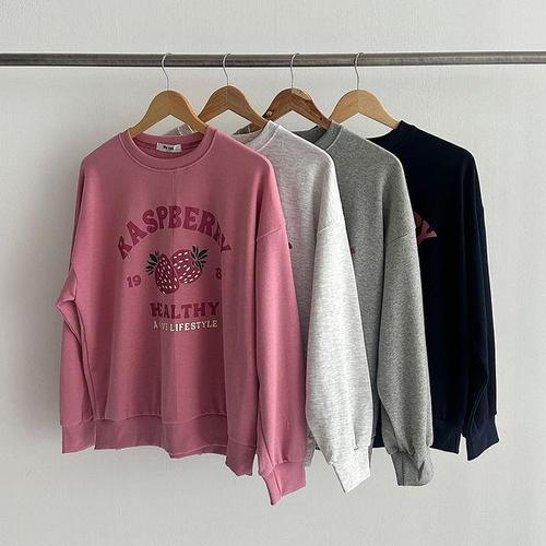 [옷자락]여자 키치 딸기프린팅 오버핏 분홍색 가을 면 맨투맨