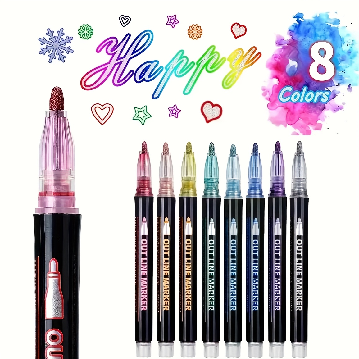 TEMU 48색 이중 레이어 메탈릭 글리터 엣지 디자인 형광 펜 - 리트랙터블, 수성, 무독성 고품질 잉크 (미술, 공예, 포스터 & 인사말 카드용) - 완벽한 부활절 & 크리스마스 선물, 생생한 색상, 귀여운 형광 펜