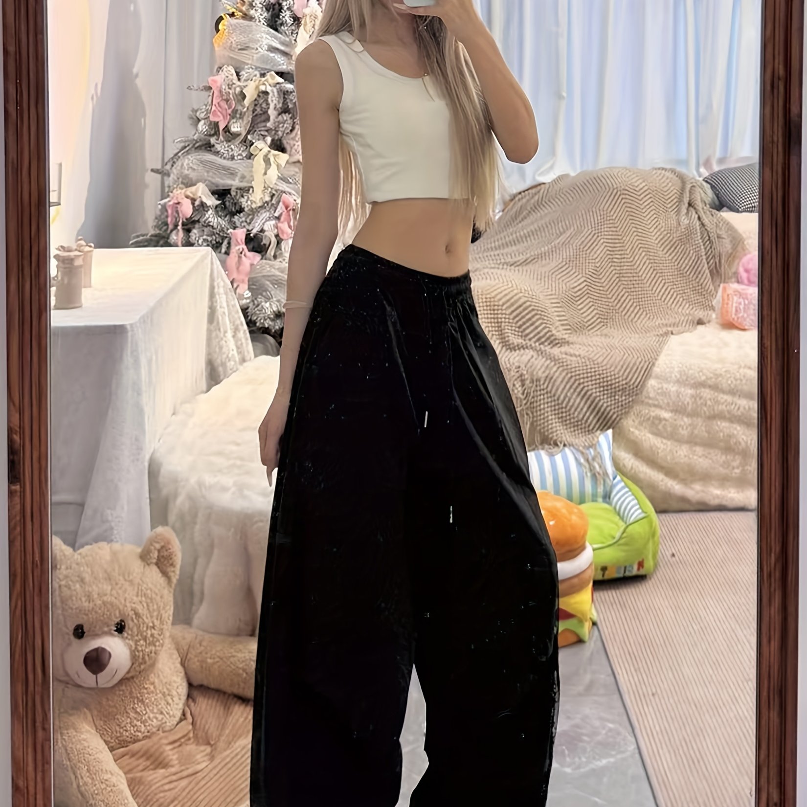 TEMU 하트 & 디자인 3D 디지털 프린트 여아용 조거 팬츠 - 루즈핏 탄성 허리 밴드, 신축성 없는 원단, 캐주얼 외출 & 놀이 친구 데이트용 롱 기장, 야외 활동용